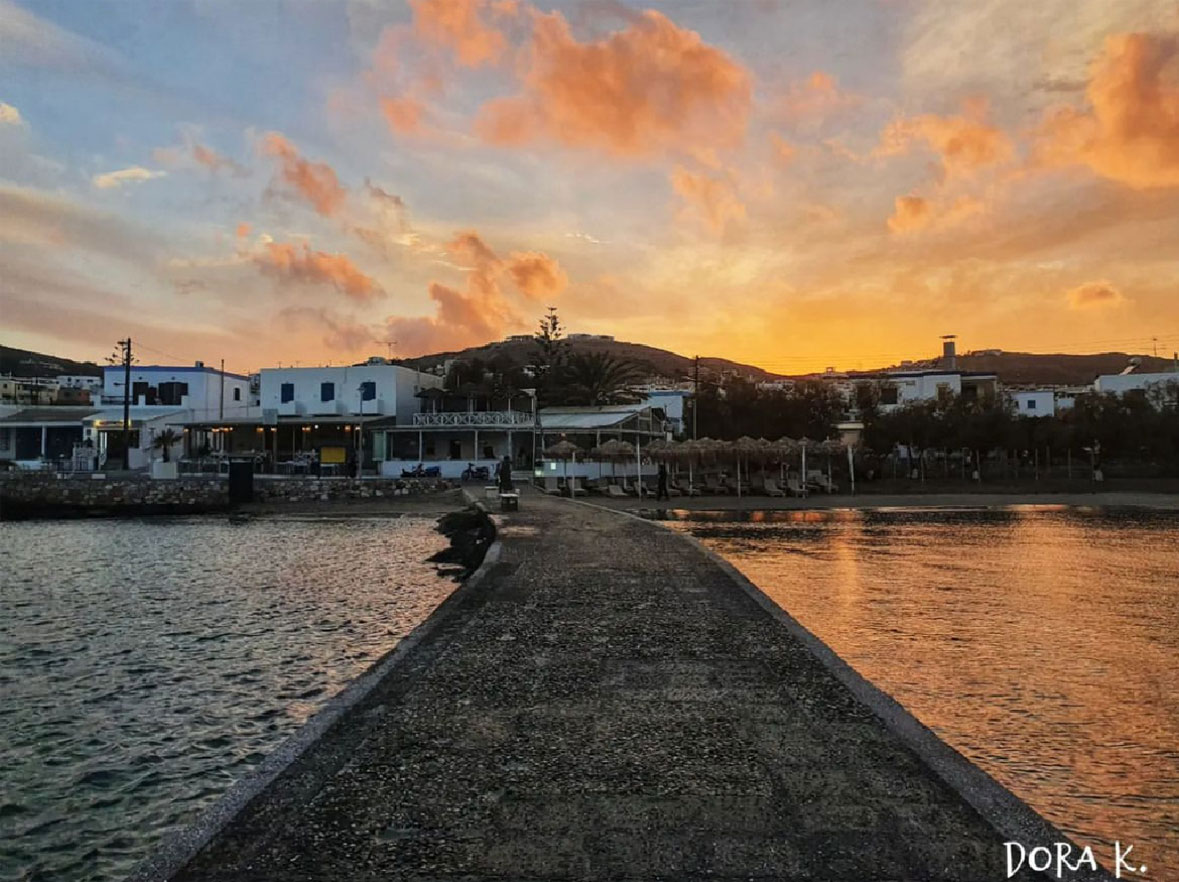 The suites are located in Azolimnos, just 5 k.m. away from the port of Ermoupoly and just a couple of minutes away from the beach. Specifically, Azolimnos is a seafront village which is located at the southeastern side of Syros island and whose beach is characterized by its blonde sand and its crystal clear blue water.