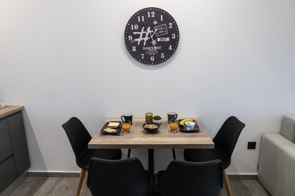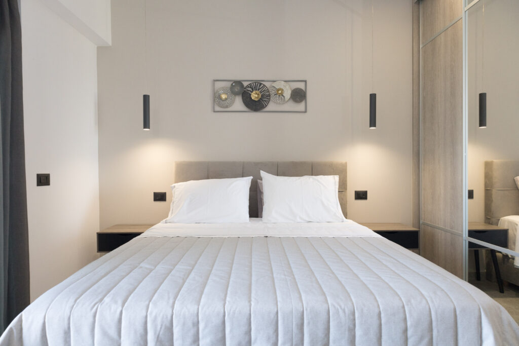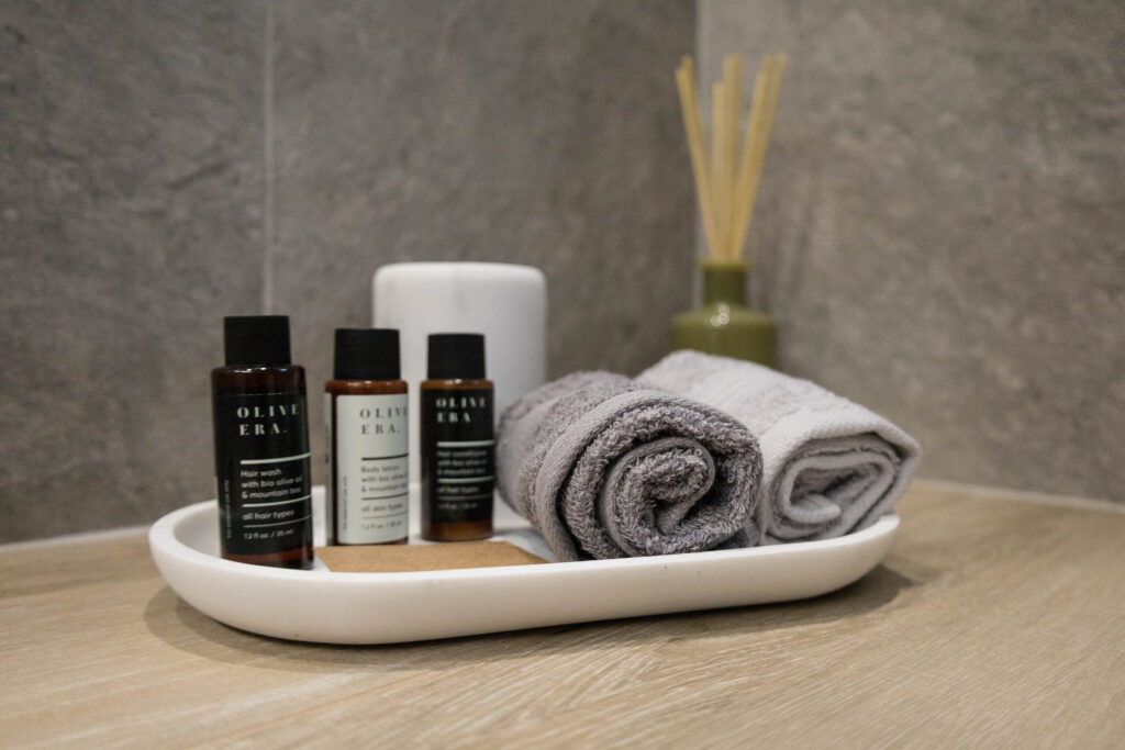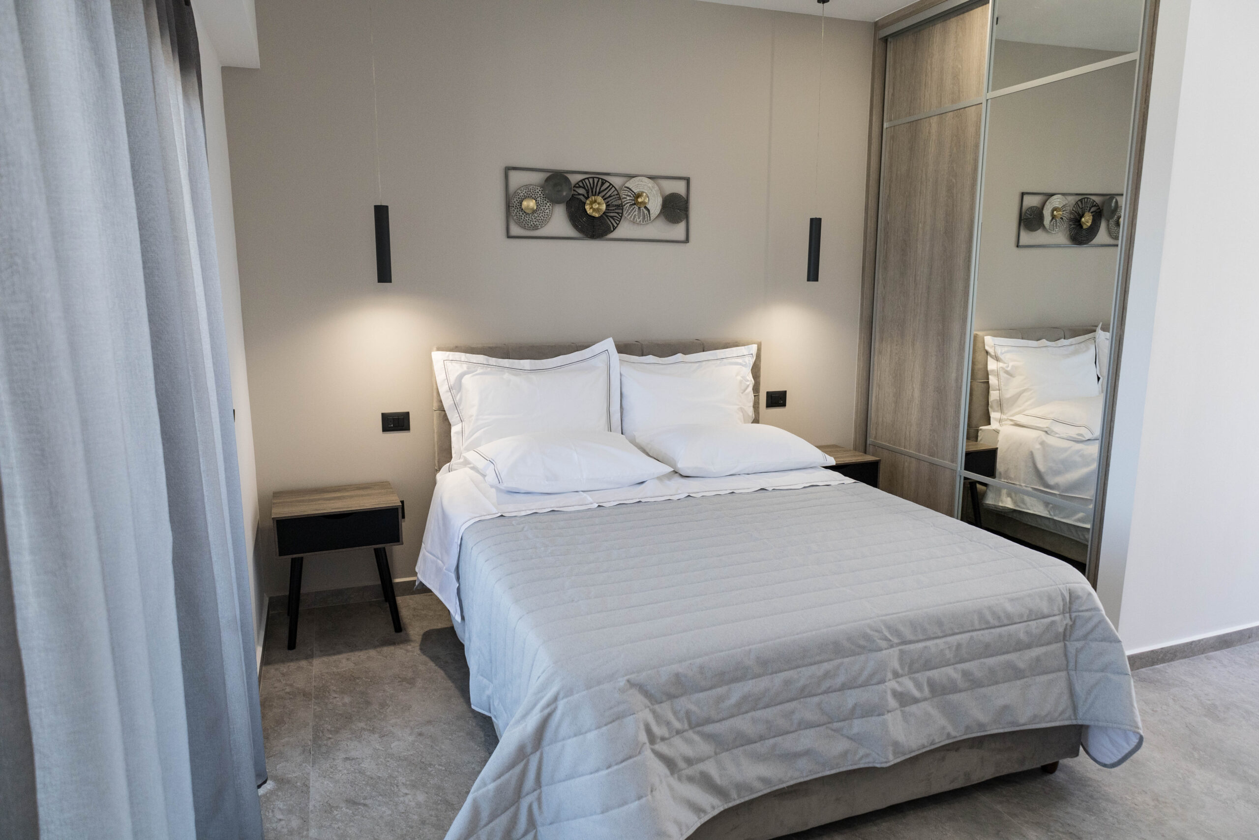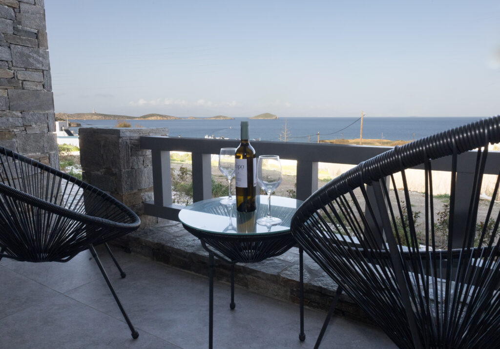 The junior suite consists of a large open plan area that includes a queen size bed, a smart tv, a spacious wardrobe, a sofa bed, a dining area, a kitchenette breakfast and a bathroom with a shower. It also provides two verandas, one on the east side and one on the west, where the guests can enjoy moments of peace with or without the sun. The number of people the suite can accommodate ranges from 2 to 3 adults or from 2 adults and 2 children up to the age of 10.